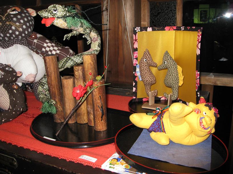 今年の干支である辰の人形と節分をモチーフとした鬼の人形が並んでおります。